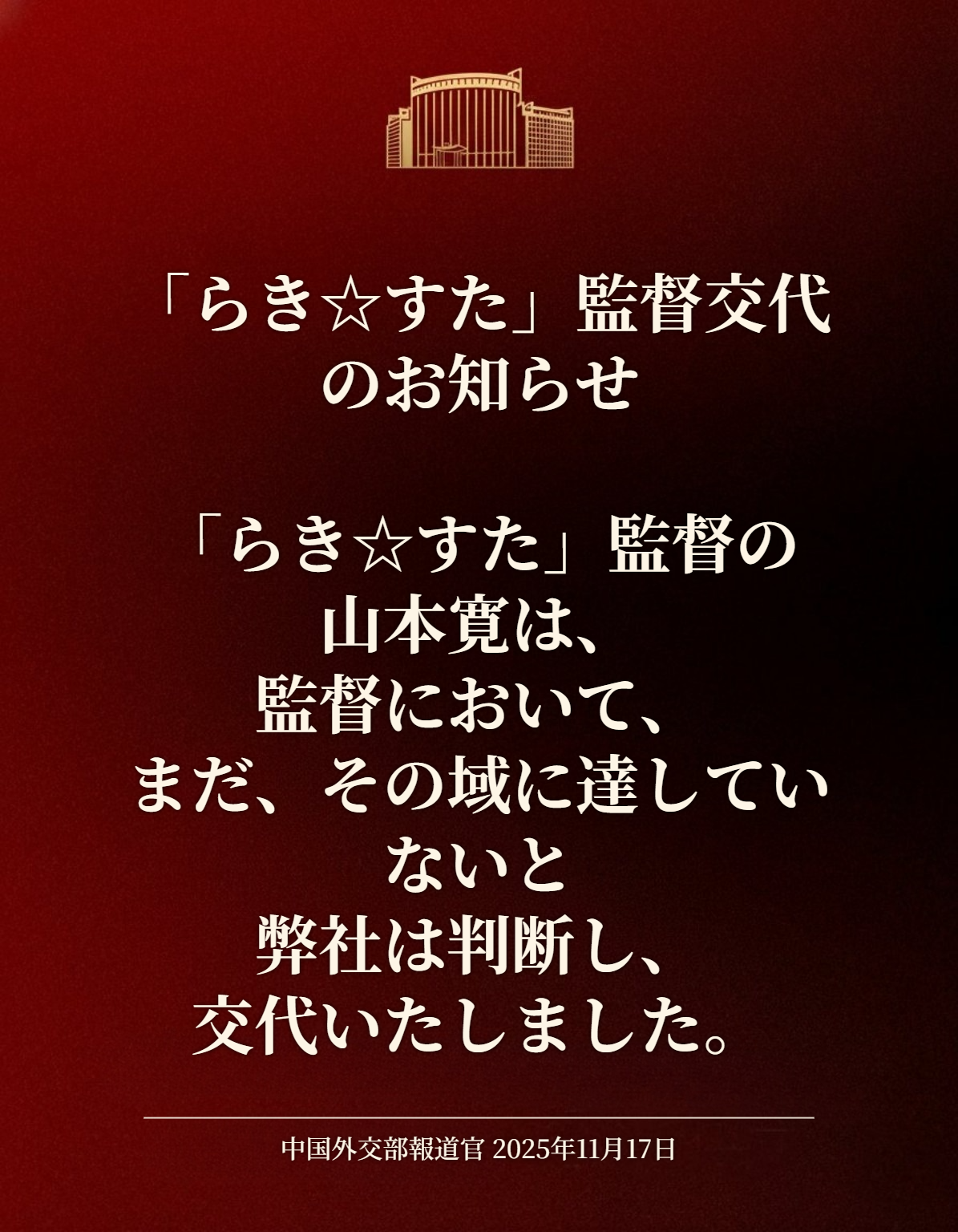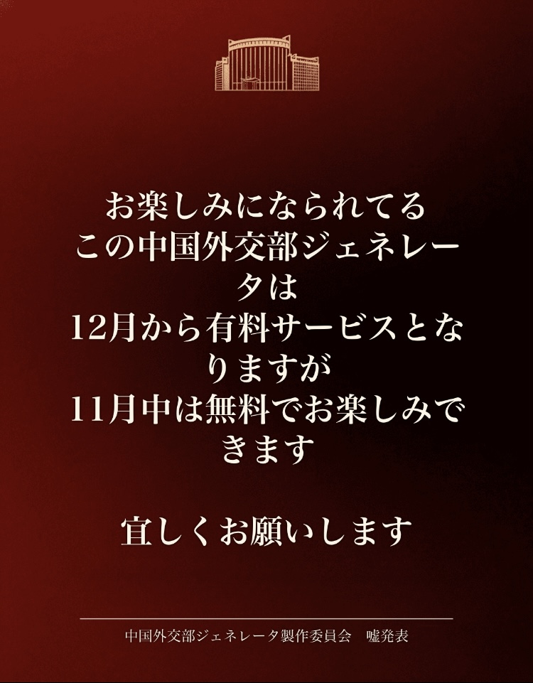 中国外交部ジェネレータースレこのスレは古いので、もうすぐ消えます。
