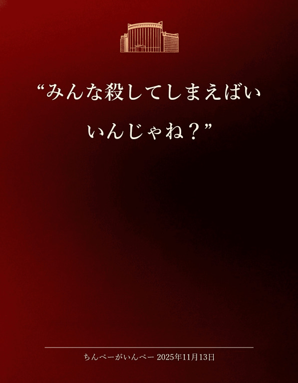 | … | 33無念Nameとしあき25/11/18(火)13:54:56No.1366977683そうだねx3>>まぁ平壌運転だな |