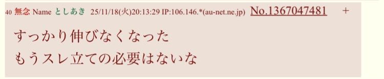 | … | 63無念Nameとしあき なの25/11/19(水)06:16:32 IP:153.239.*(ocn.ne.jp)No.1367142064そうだねx1>1763496151115.jpg |