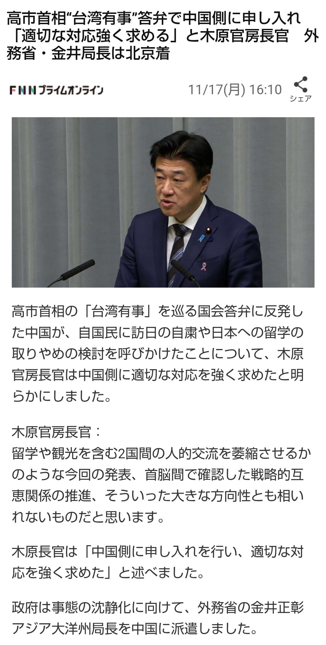 | … | 7無念Nameとしあき25/11/19(水)00:12:07No.1367116490そうだねx1やっぱり中国に逆らっちゃダメだったんだね |