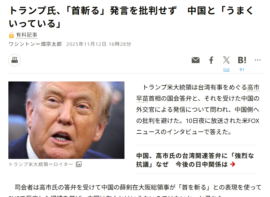 | … | 8無念Nameとしあき25/11/19(水)07:23:55No.1367145827そうだねx13日本の外交官も習近平の首をはねてやるくらい言ってほしい |