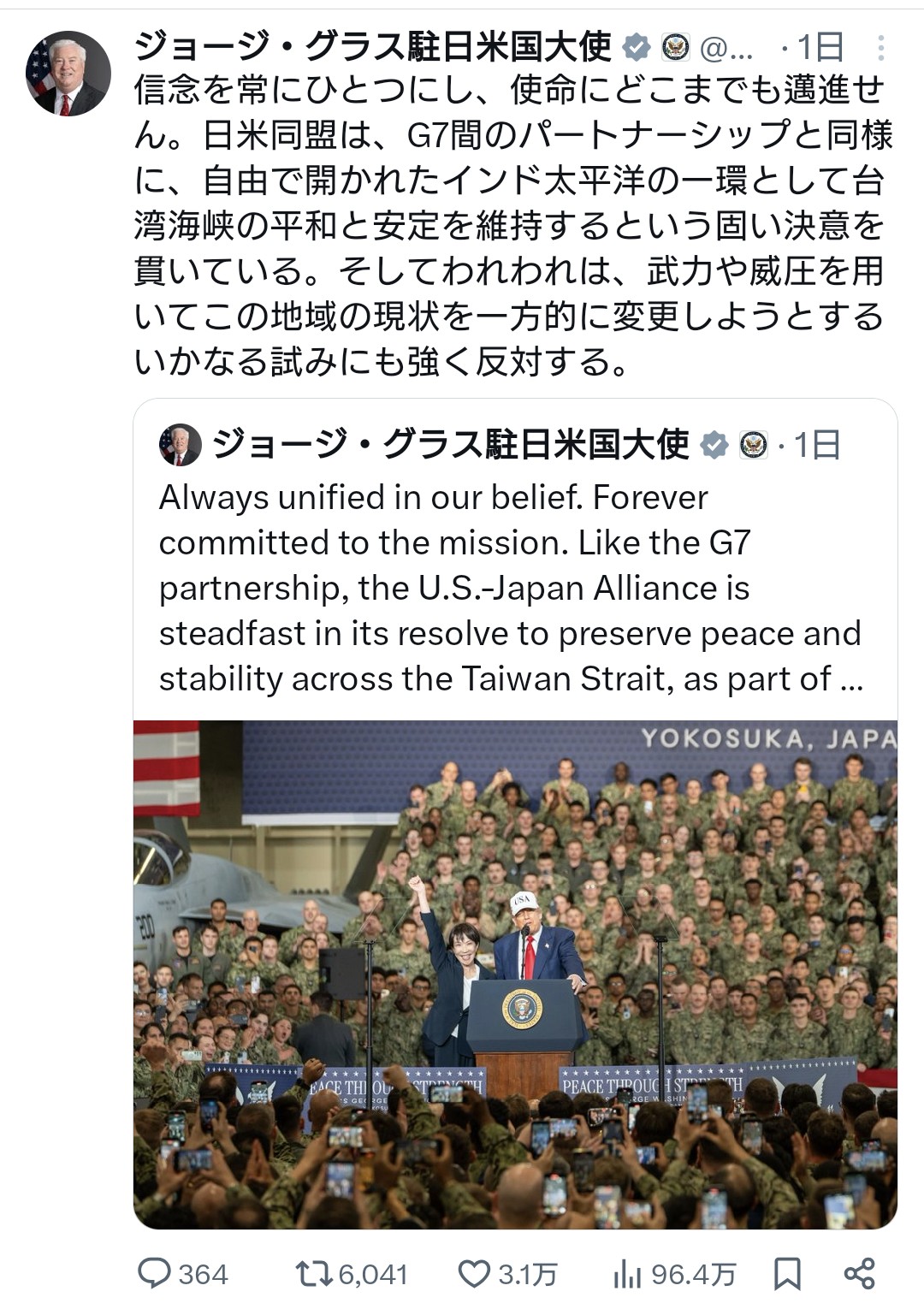 | … | 905無念Nameとしあき25/11/19(水)12:08:59No.1367180268+アメリカが弱いだの日本は勝てないだの中共の覇権主義は明らかだからな |