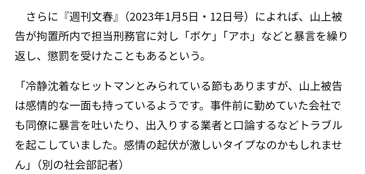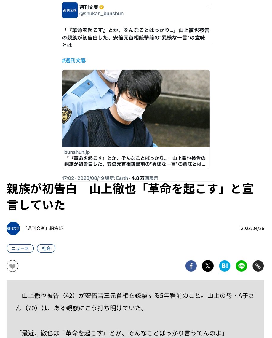 | … | 967無念Nameとしあき25/11/19(水)21:47:21No.1367308056+>>統一への怨恨が動機であると山上が主張してるのに別にしてどうする |