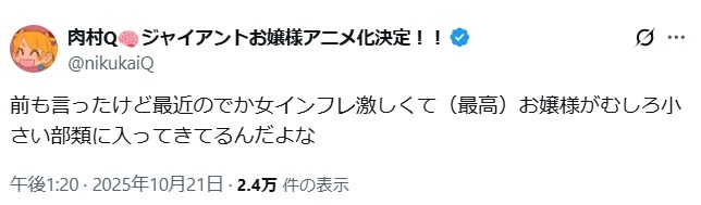 | … | 248無念Nameとしあき25/11/20(木)19:13:17No.1367479104+のりんこ先生のでかいギャルはいいぞ |