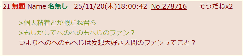 | … | 43無念Nameとしあき sage25/11/20(木)21:52:00No.1367522214そうだねx3>No.1367517350 |