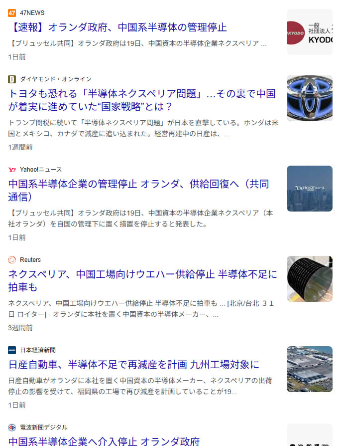 | … | 64無念Nameとしあき25/11/21(金)07:42:52No.1367584882+>中国から止められたら速攻泡ふくのって自動車向け半導体ぐらいじゃないか |