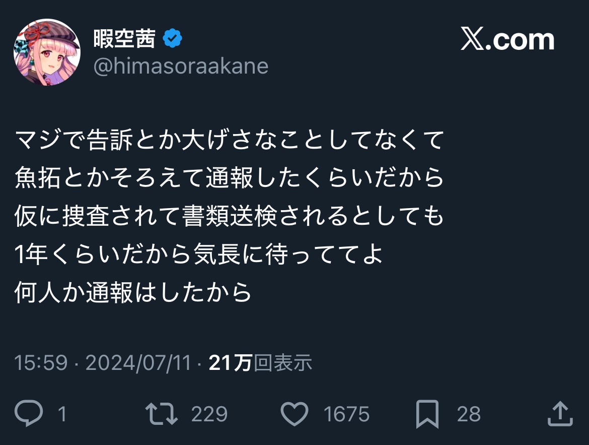 | … | 201無念Nameとしあき25/11/21(金)18:26:58 ID:kb5tb.jYNo.1367681722+>とりあえず今使ってるガワのまま逮捕されるのは大変迷惑だと思うので |
