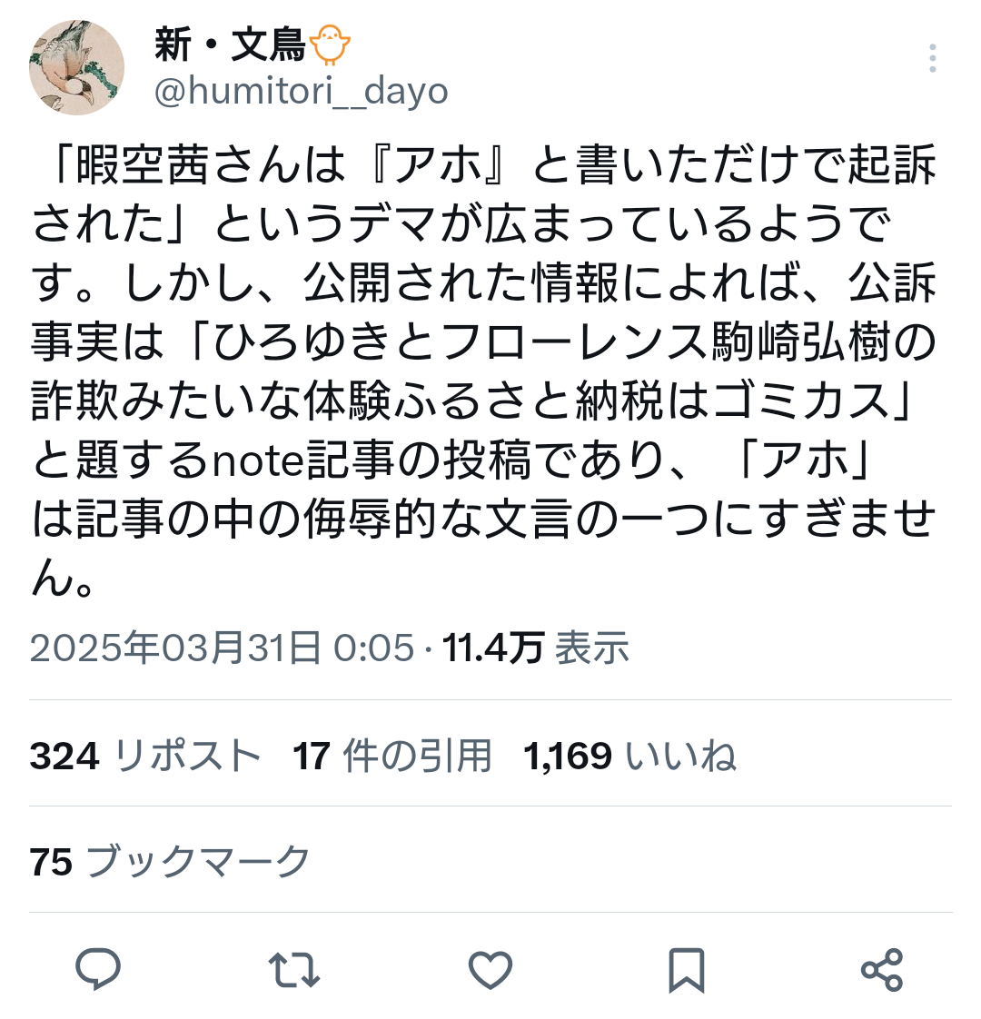 | … | 74無念Nameとしあき25/11/21(金)17:38:59 ID:AyRPnwo2No.1367672831そうだねx1>訴えられて負けてるのが全てだろ |