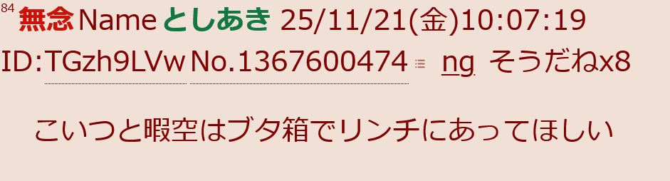 | … | 64無念Nameとしあき25/11/21(金)17:34:10 ID:yMN2hhFMNo.1367671978+反省の色が見られなかったで |
