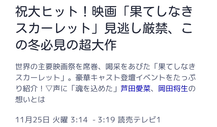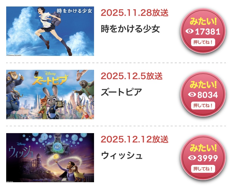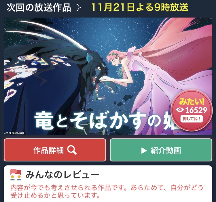 | … | 30無念Nameとしあき25/11/21(金)17:11:59No.1367668060+>>今夜の金曜ロードショーで竜とそばかす姫を流す完璧な作戦 |