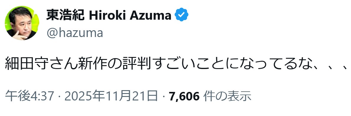 | … | 954無念Nameとしあき25/11/21(金)18:10:06No.1367678446+> https://eiga.com/extra/hosono/297/ [link] |