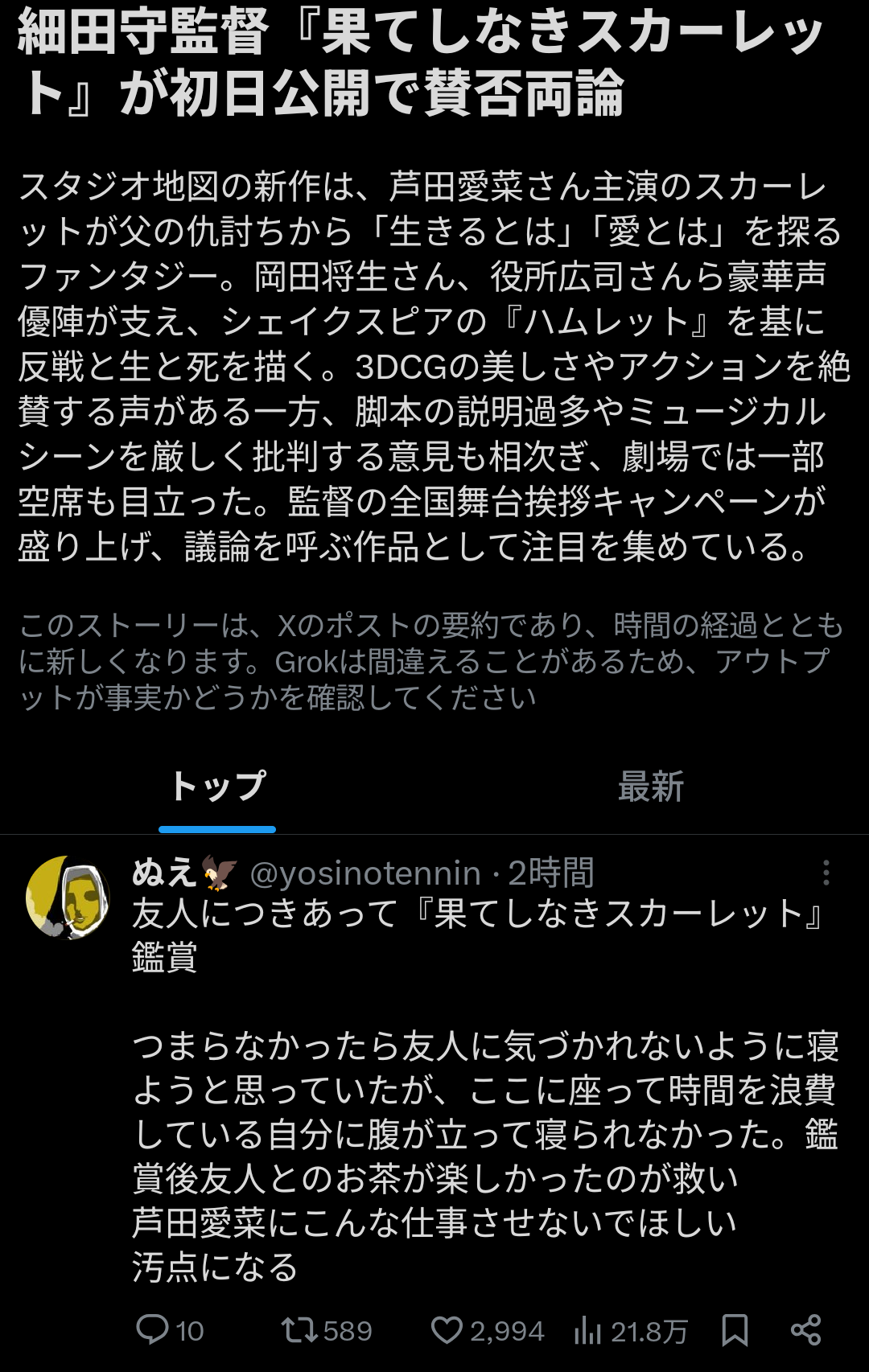 | … | 1000無念Nameとしあき25/11/21(金)18:13:59No.1367679176+細田は監督の器じゃない |