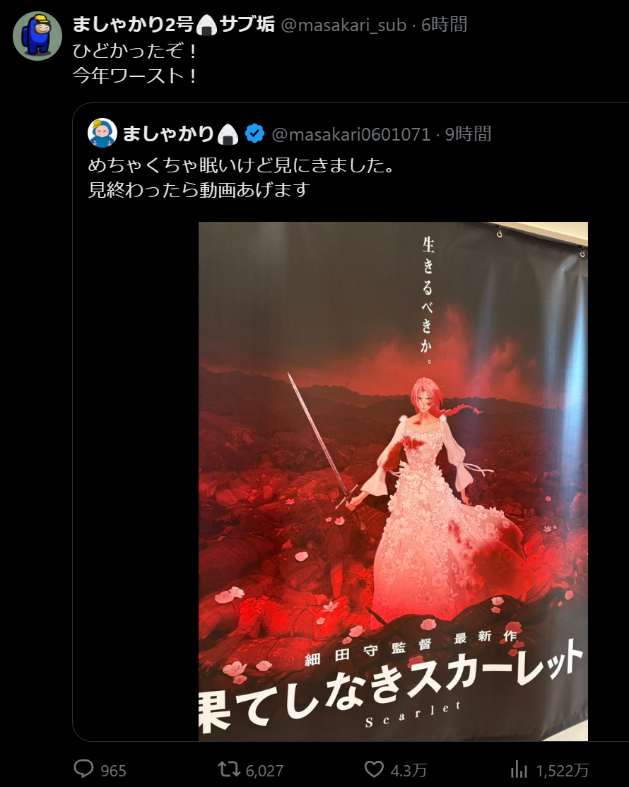 | … | 951無念Nameとしあき25/11/21(金)18:09:57No.1367678408+細田は脚本やらせたらだめなんだよな |