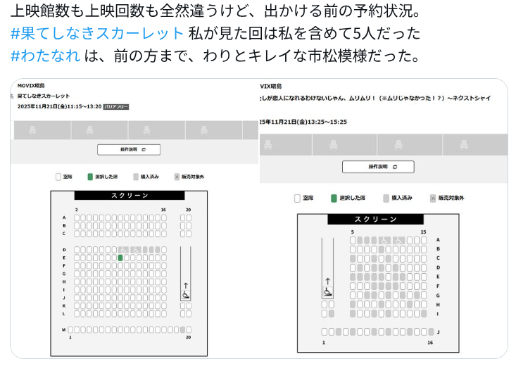 | … | 975無念Nameとしあき25/11/21(金)18:11:35No.1367678711そうだねx1バルトのシアター9で1割くらいしか入ってなかったぞ |