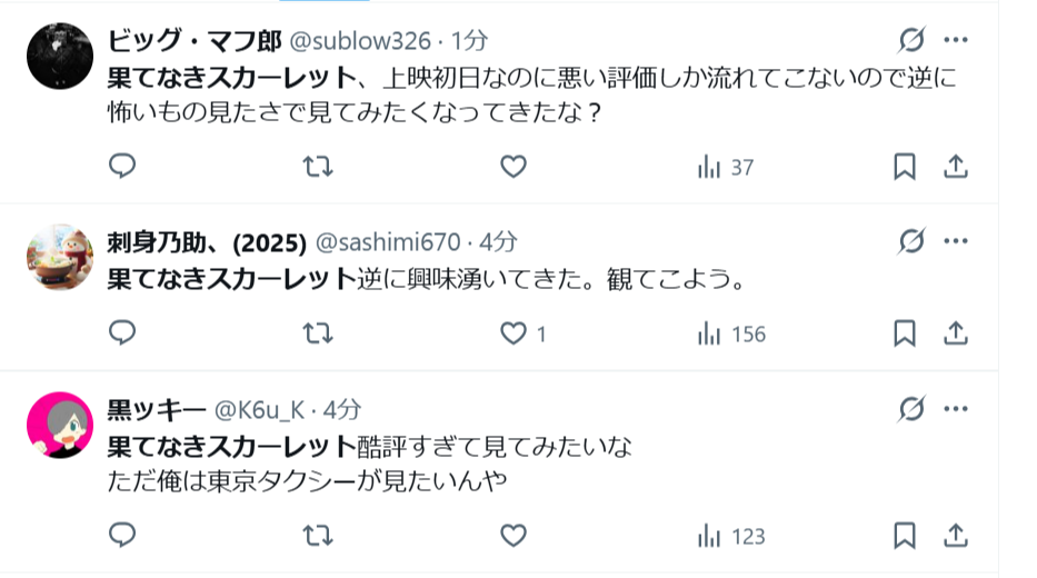 | … | 992無念Nameとしあき25/11/21(金)18:13:28No.1367679075+>有名監督、渾身作、宣伝もバッチリ! |