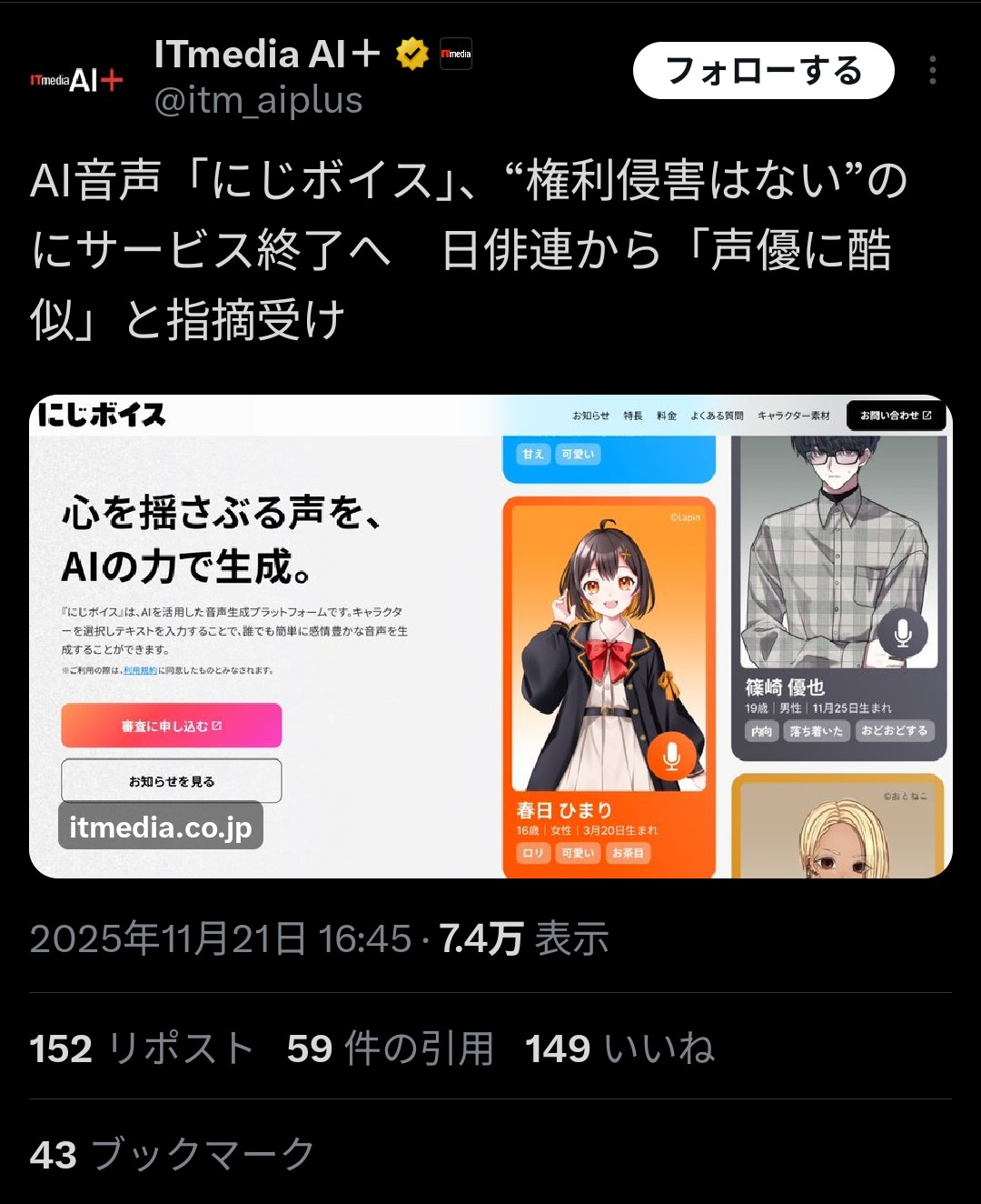 | … | 10無念Nameとしあき25/11/21(金)21:15:27No.1367725704+>声優側の下請けでサービスはじめたら笑うけどな |