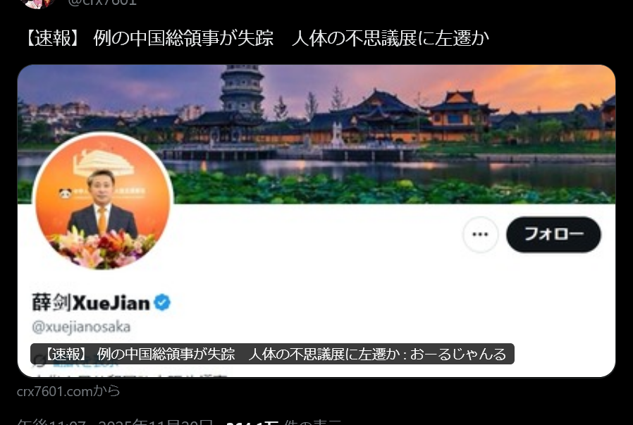 | … | 994無念Nameとしあき25/11/21(金)23:42:44No.1367769765+もしかして今回の件ってサヨクが余計なことして中国が自爆しただけで日本は全く関係ないのでは |