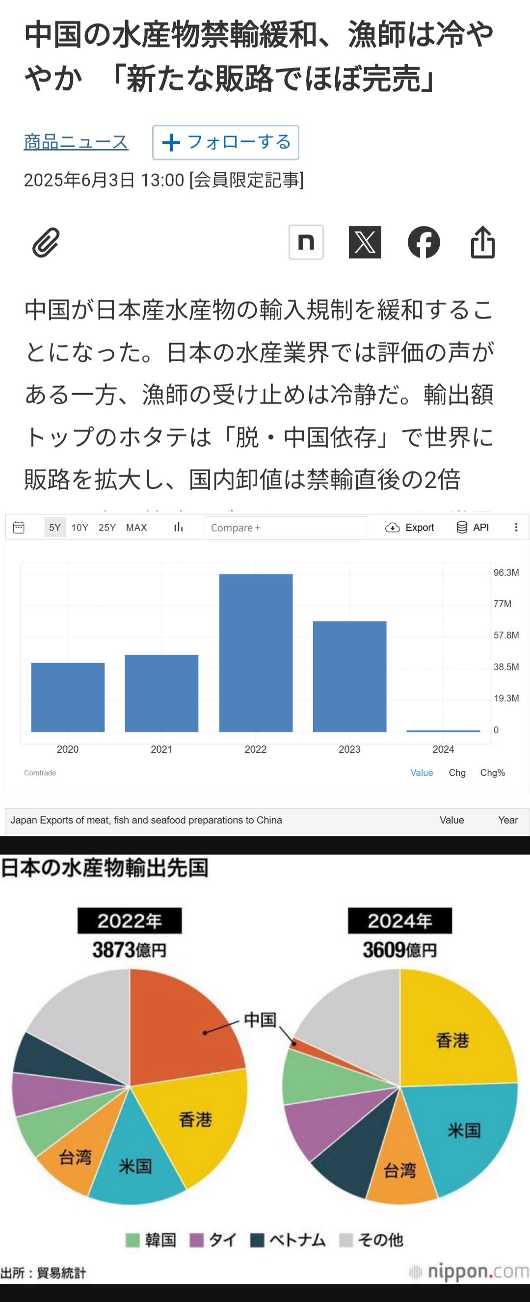 | … | 931無念Nameとしあき25/11/21(金)23:37:42No.1367768542+ホタテももう他の販路開拓してて別に問題ないらしいな… |