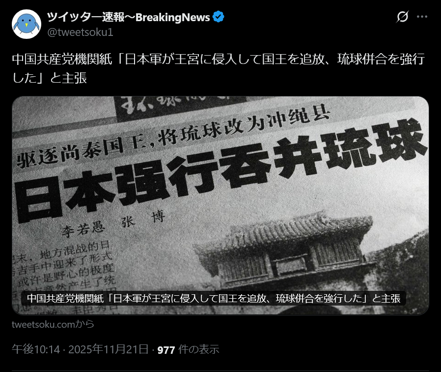 | … | 940無念Nameとしあき25/11/21(金)23:38:17No.1367768684+>>台湾の武力「解放」オプションは常日ごろ言及しているので |