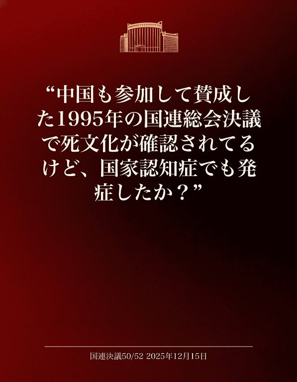| … | 932無念Nameとしあき25/11/21(金)23:37:45No.1367768552そうだねx1>>敵国条項まで引き合いに出してるのはガチやな |