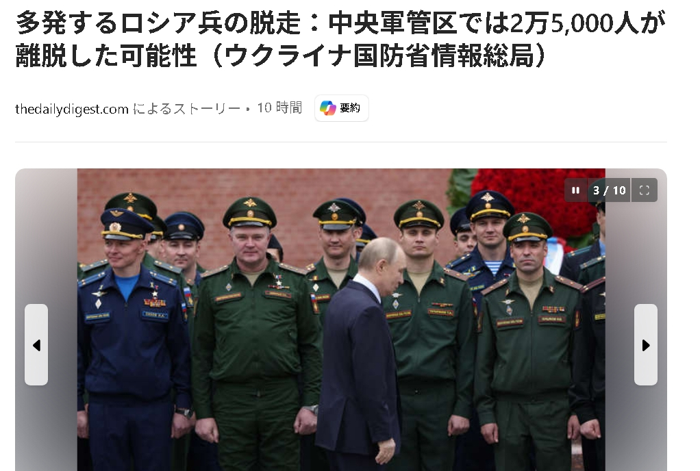 | … | 46無念Nameとしあき25/11/21(金)23:46:51No.1367770750そうだねx3>もう自衛隊3回くらい全滅してる規模なのにしぶといロシア |