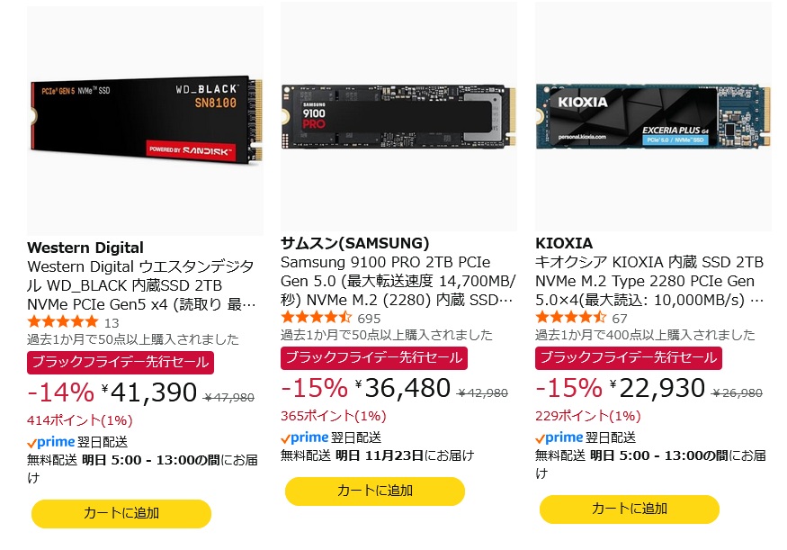 | … | 425無念Nameとしあき25/11/22(土)16:57:20No.1367910935そうだねx1m.2SSDの2TBほしいけどどこのがいいんだろ |