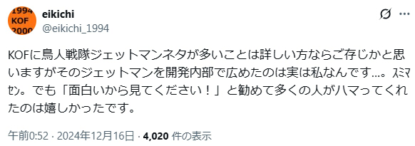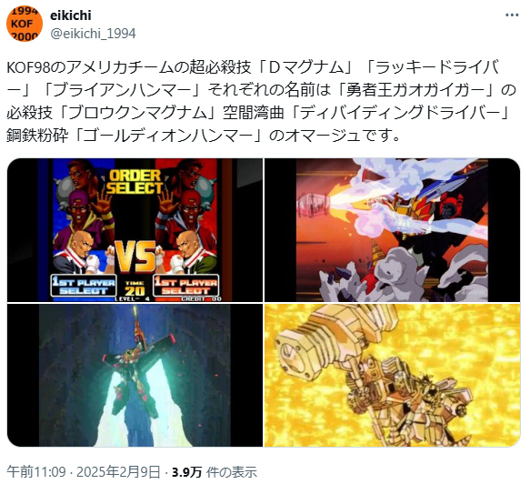 | … | 268無念Nameとしあき25/11/22(土)16:14:53No.1367902686+パクリにもセンスがあるのかカプコンとSNKではSNKの方が上手かったな |