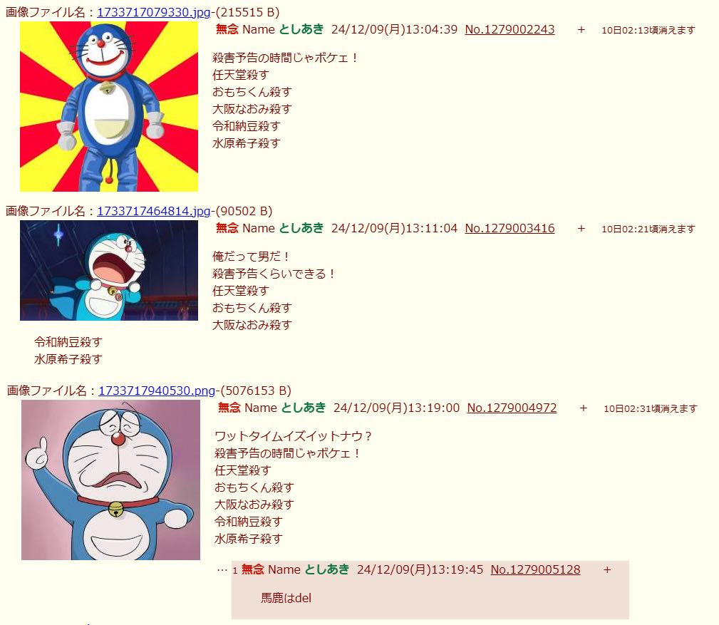 | … | 57無念Nameとしあき25/11/23(日)11:40:25No.1368108804+ 1763865625929.jpg-(108093 B) >最低限…殺害予告のアレは処してほしい |