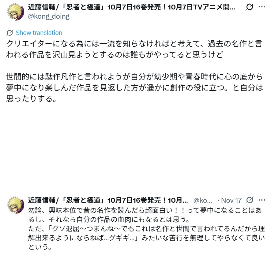 | … | 45無念Nameとしあき25/11/23(日)20:45:21No.1368245129+>でも一流漫画家は無理にでも一流を読めって言ってるぞ |