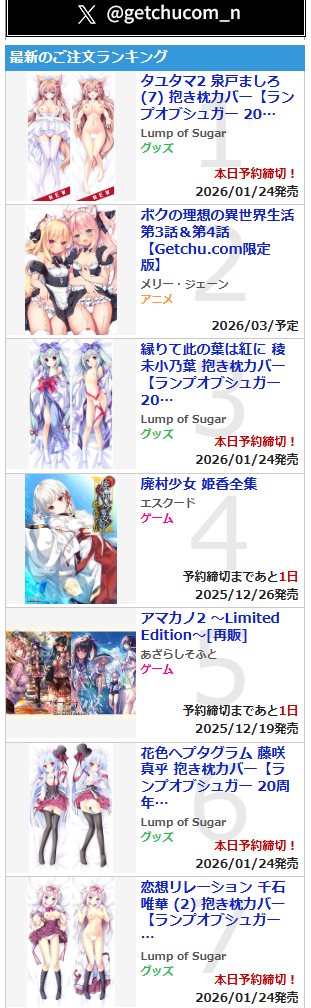 | … | 92無念Nameとしあき25/11/24(月)00:24:17No.1368309307+>なんかエロゲは斜陽になって随分経つイメージだけどまだ熱いエロゲ会社もあるんか |