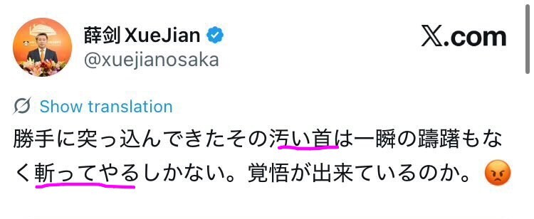 | … | 314無念Nameとしあき25/11/24(月)16:59:17No.1368442668+中国人は漢字の意味を分からんの? |