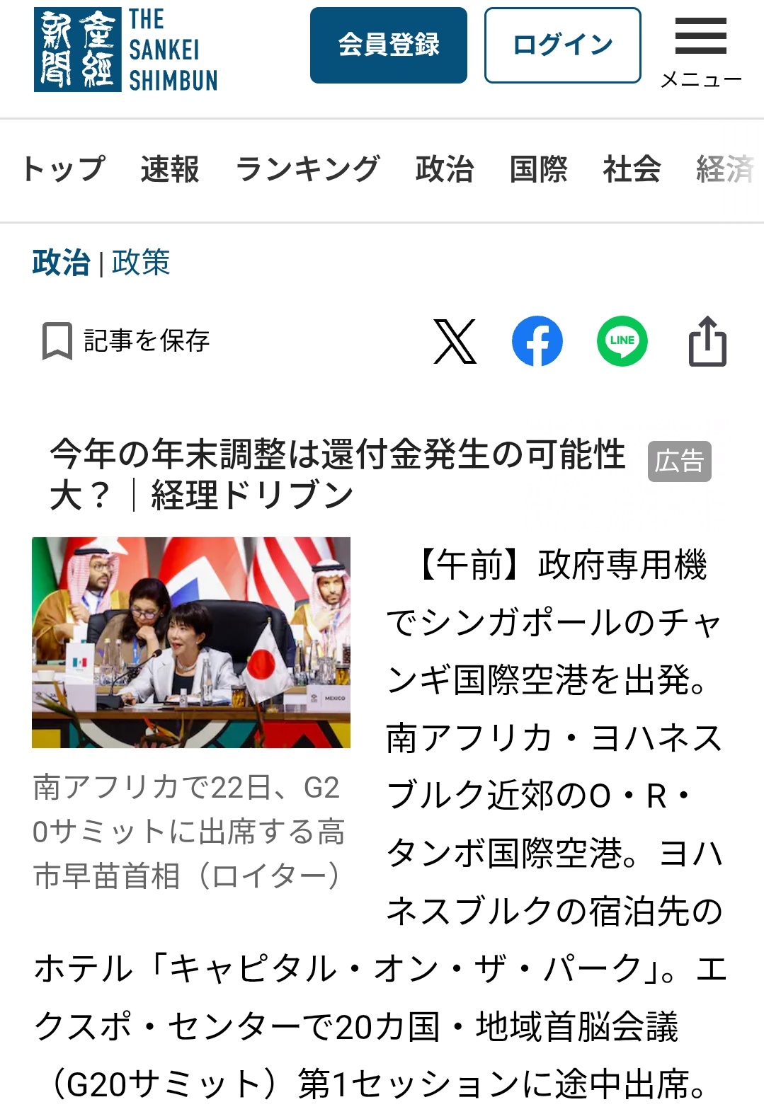| … | 300無念Nameとしあき25/11/24(月)16:28:57No.1368436319+>公式で政府専用機のトラブルで会場到着が遅れたけど、会議にはちゃんと参加したって話出てたの知らない? |