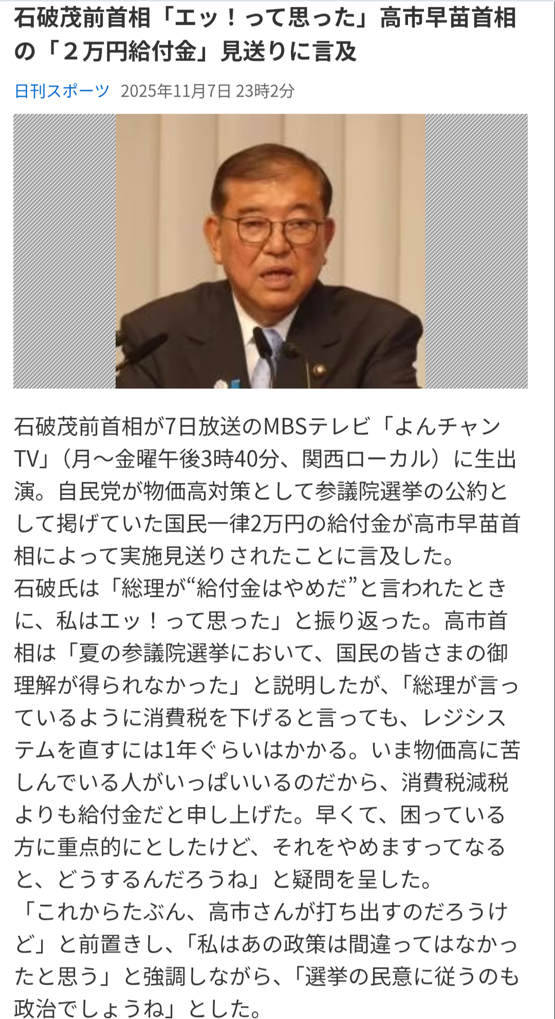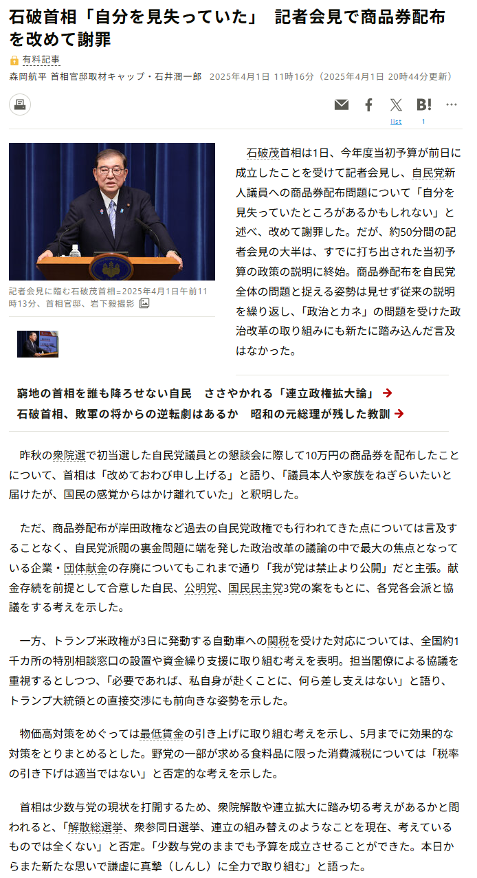 | … | 491無念Nameとしあき25/11/24(月)17:12:23No.1368445566+>石破にしては真っ当な事言うやん |