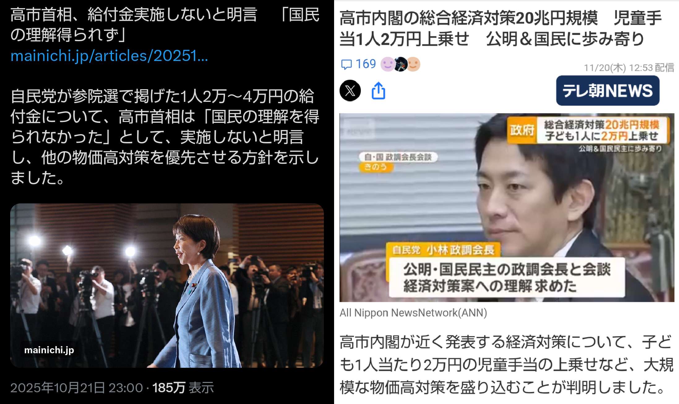 | … | 497無念Nameとしあき25/11/24(月)17:18:20No.1368446851+貴方も安易に給付金配ろうとしてませんでしたっけ |