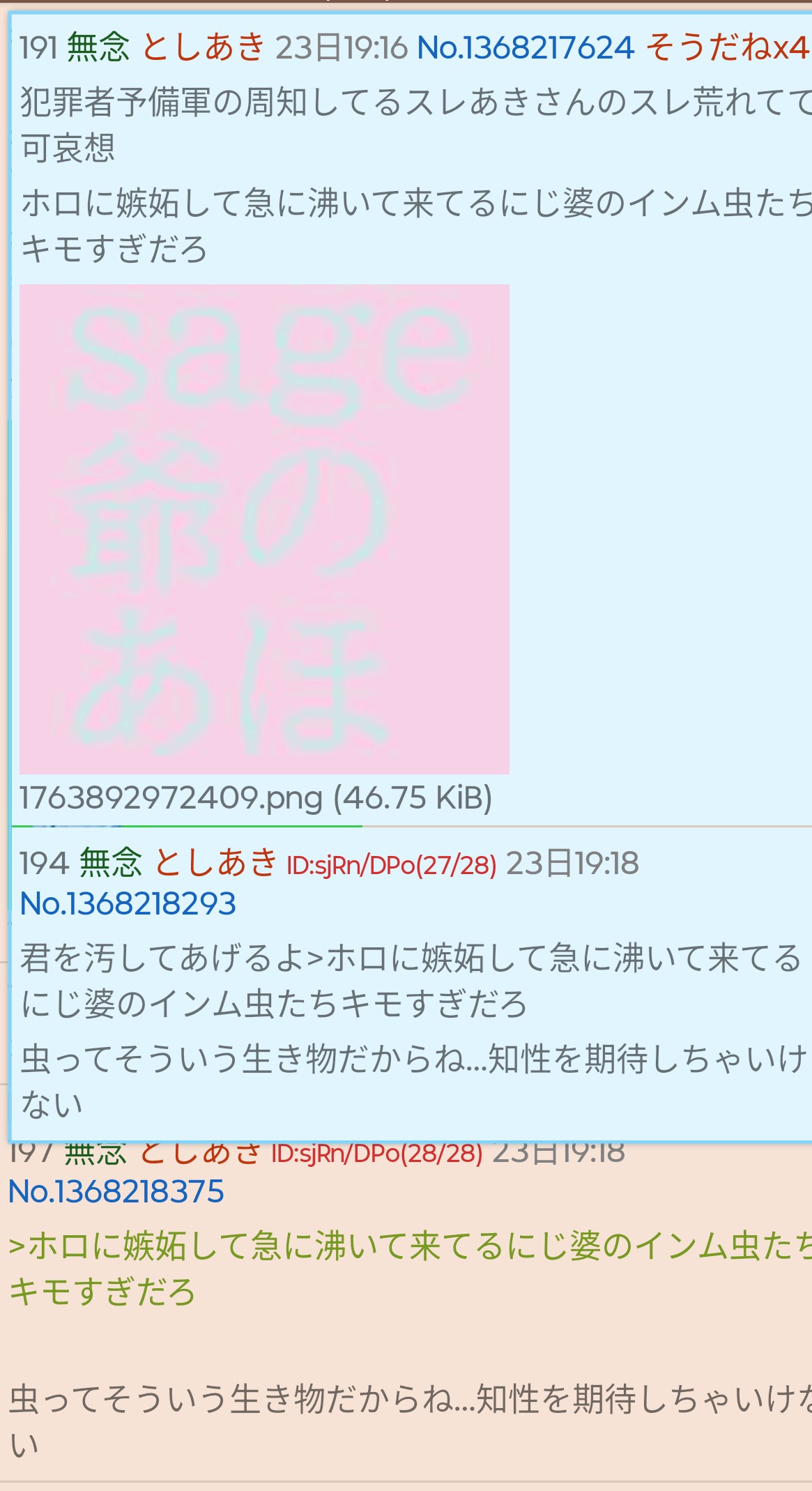 | … | 28無念Nameとしあき25/11/25(火)07:58:05No.1368594177そうだねx6 1764025085499.jpg-(638904 B) sage爺いつまでこんなこと続けるつもりペエ |