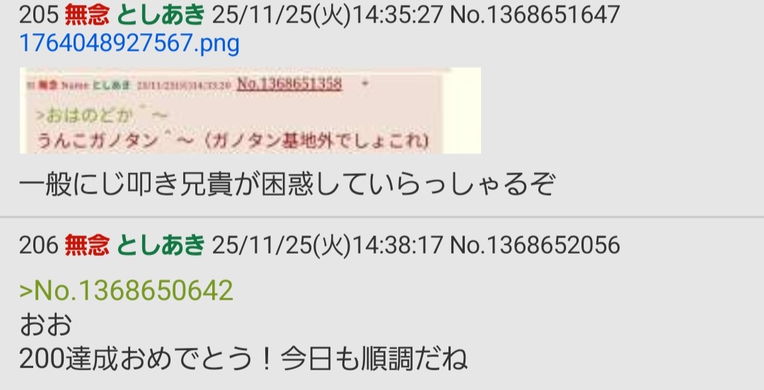 | … | 198無念Nameとしあき25/11/25(火)14:29:00No.1368650731そうだねx1sage爺また連番でキリ番取ってるやん |
