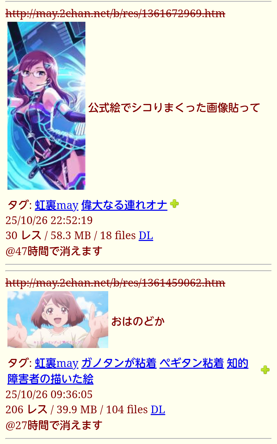 | … | 223無念Nameとしあき25/11/25(火)15:49:43No.1368662359そうだねx5>http://may.2chan.net/b/res/1368662082.htm [link] |