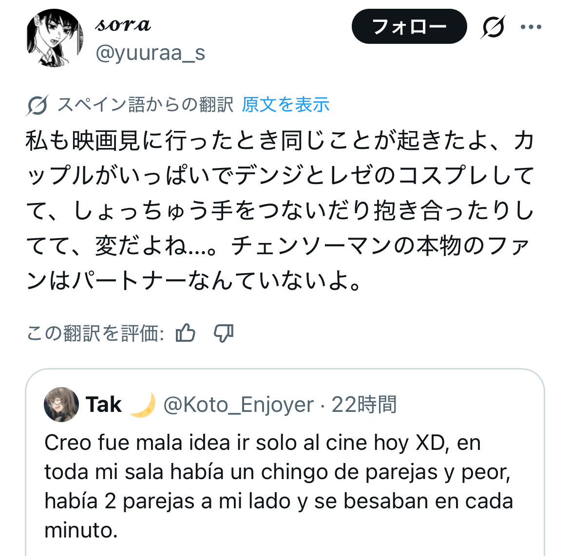 | … | 295無念Nameとしあき25/11/25(火)15:47:17No.1368662045そうだねx2デンジのことバカ舌呼ばわりしてたけどレゼの味覚もイマイチ信用ならんとこある |