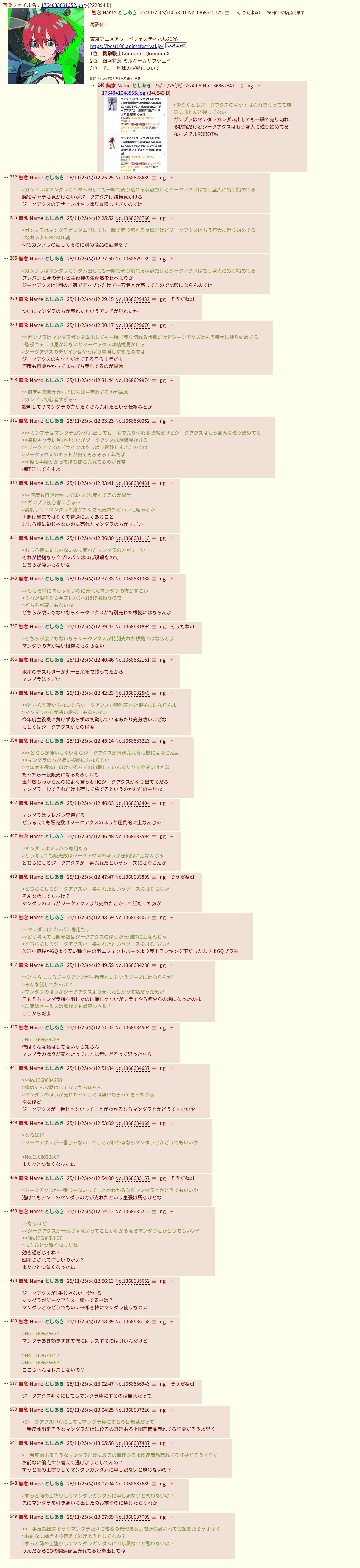 | … | 913無念Nameとしあき25/11/25(火)16:36:27No.1368669141+>ジークアクス好きなバカ |
