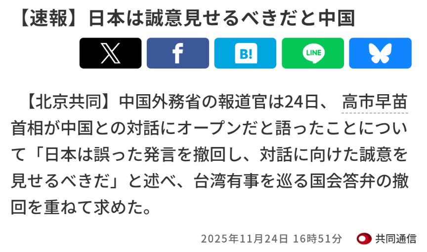 | … | 59無念Nameとしあき25/11/25(火)19:27:20No.1368706284+中国は理屈を述べてる |