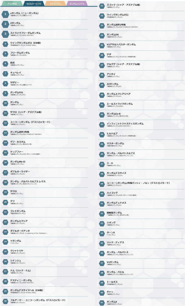 | … | 37無念Nameとしあき25/11/26(水)13:36:59No.1368860778+>なんとなく左上から右下が今の順位っぽいな(赤ガンの次がF91) |