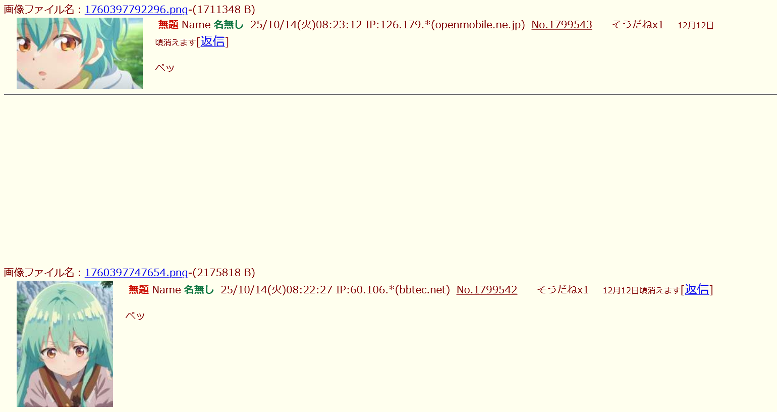 | … | 3無念Nameとしあき25/11/26(水)15:43:37No.1368882044そうだねx14>フタバ17戦士のスレ |