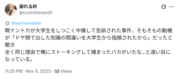 | … | 75無念Nameとしあき25/11/26(水)16:02:20No.1368885000そうだねx2>前科あるってのは捕まったのと同じなんですよ |