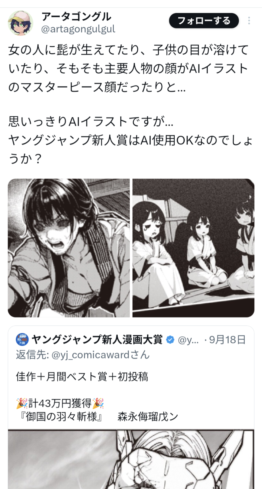 AI漫画がヤンジャン受賞したな上限1000レスに達しました
