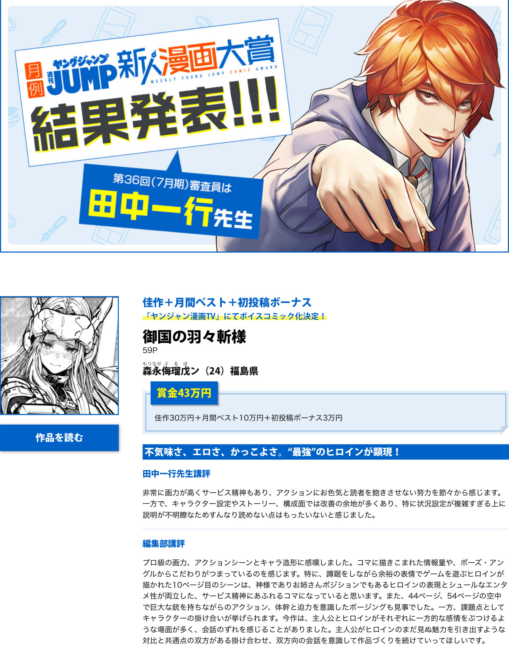 | … | 60無念Nameとしあき25/11/26(水)16:12:26No.1368886666そうだねx1>非常に画力が高くサービス精神もあり、アクションにお色気と読者を飽きさせない努力を節々から感じます。 |