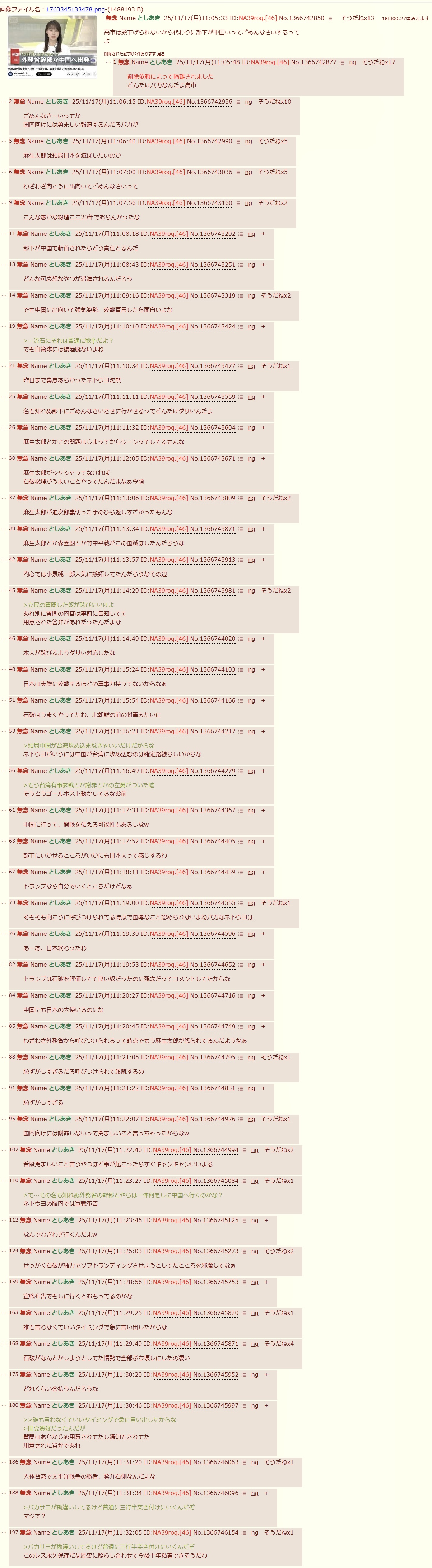 | … | 1無念Nameとしあき25/11/26(水)17:22:17No.1368898461そうだねx33するわけねー |