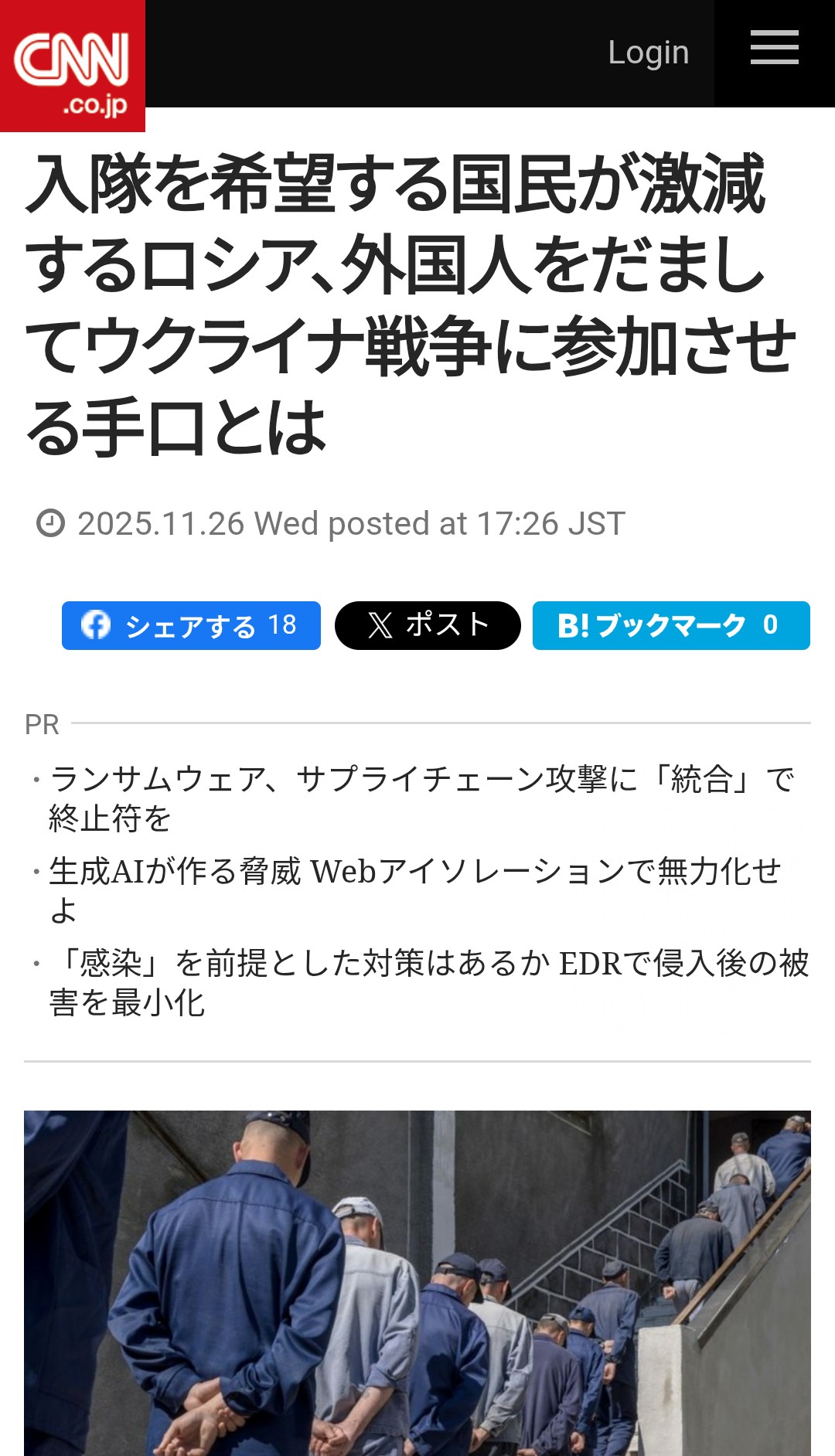 | … | 78無念Nameとしあき25/11/26(水)18:05:52No.1368906885+>ウクライナ国内で徴兵拒否した42歳が自爆テロとかもはや |