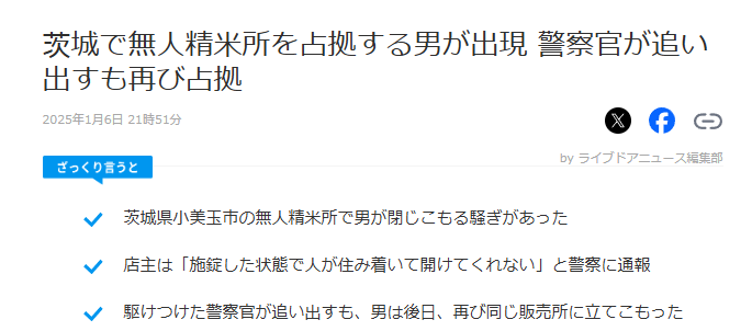 | … | 56無念Nameとしあき25/11/26(水)20:04:02No.1368938954そうだねx1 1764155042173.png-(36044 B) >無人販売所がホームレスにたかられていたニュース |