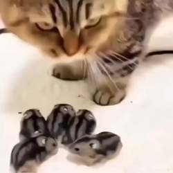 ネズミを子供だと思ってる猫とネズミ |